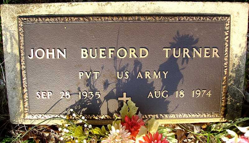 | TURNER, JOHN BUEFORD | SEP 28 1935 | AUG 18 1974 | "PVT US ARMY" Christian Cross emblem |