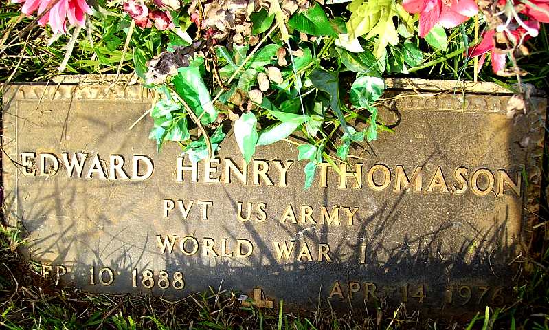 | THOMASON, EDWARD HENRY | SEP 10 1888 | APR 14 1976 | "PVT US ARMY" "WORLD WAR I" Christian Cross emblem |