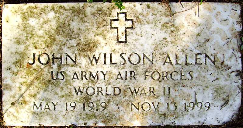 | ALLEN, JOHN WILSON | MAY 19 1919 | NOV 13 1999 | "US ARMY AIR FORCES" "WORLD WAR II" Christian Cross emblem |