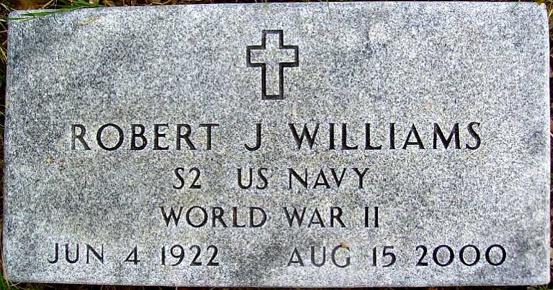 | WILLIAMS, ROBERT J. | JUN 4 1922 | AUG 15 2000 | "S2 US NAVY" "WORLD WAR II" Christian Cross emblem |