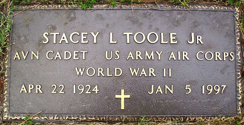 | TOOLE, STACEY L., JR. | APR 22 1924 | JAN 5 1997 | "AVN CADET" "US ARMY AIR CORPS" "WORLD WAR II" Christian Cross emblem |
