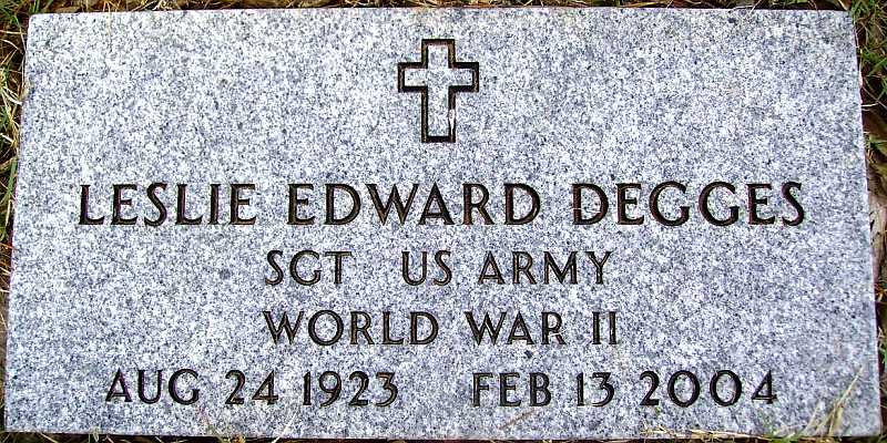 | DEGGES, LESLIE EDWARD | AUG 24 1923 | FEB 13 2004 | "SGT US ARMY" "WORLD WAR II" Christian Cross emblem |