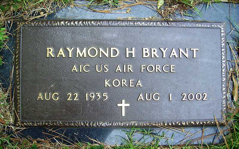 | BRYANT, RAYMOND H. | AUG 22 1935 | AUG 1 2002 | "A1C US AIR FORCE" "KOREA" Christian Cross emblem |
