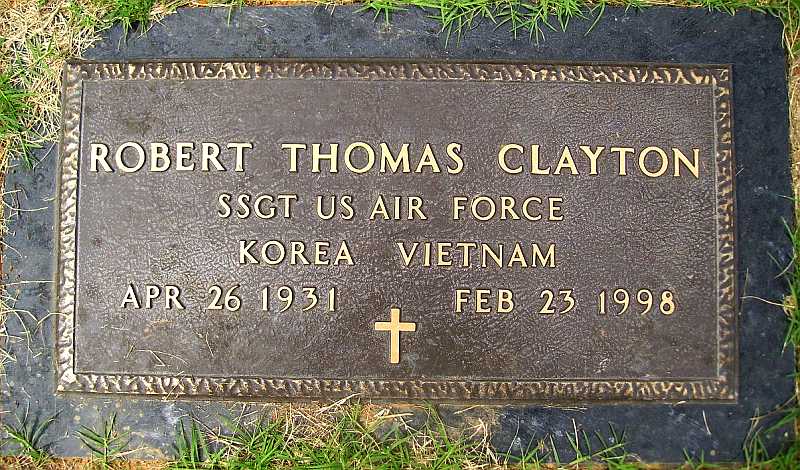 | CLAYTON, ROBERT THOMAS | APR 26 1931 | FEB 23 1998 | "S SGT US AIR FORCE" "KOREA VIETNAM" Christian Cross emblem |