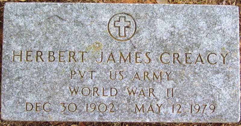 | CREACY, HERBERT JAMES | DEC 30 1902 | MAY 12 1979 | "PVT US ARMY" "WORLD WAR II" Christian Cross in circle emblem |