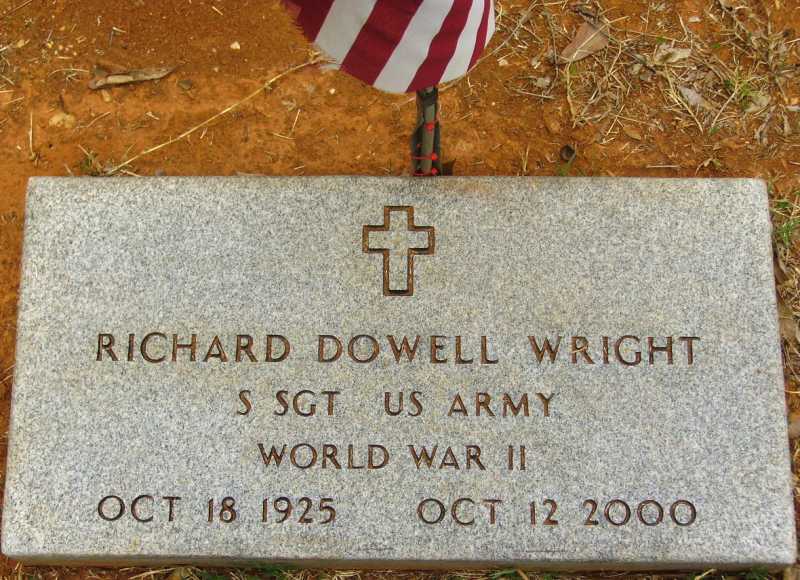 | WRIGHT, RICHARD DOWELL | OCT 18 1925 | OCT 12 2000 | "S SGT US ARMY" "WORLD WAR II" Christian Cross emblem |