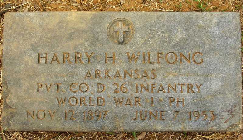 | WILFONG, HARRY H. | NOV 12 1897 | JUNE 7 1953 | "ARKANSAS" "PVT CO D 26 INFANTRY" "WORLD WAR I PH" Christian Cross in circle emblem |