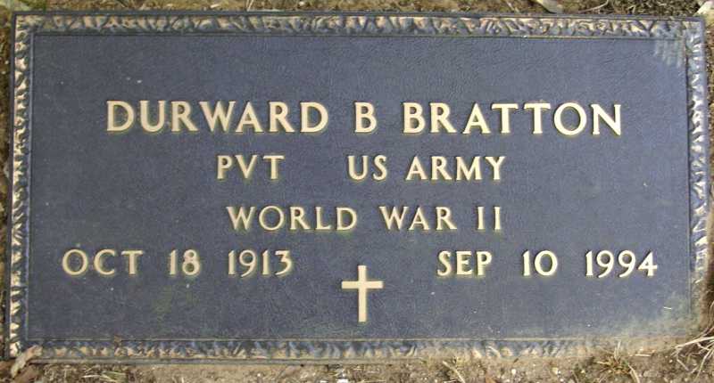 | BRATTON, DURWARD B. | OCT 18 1913 | SEP 10 1994 | "PVT US ARMY" "WORLD WAR II" Christian Cross emblem |