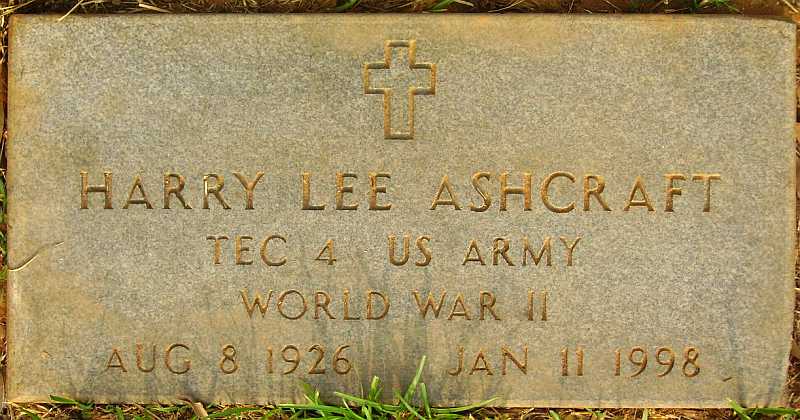 | ASHCRAFT, HARRY LEE | AUG 8 1926 | JAN 11 1998 | "TEC 4 US ARMY" "WORLD WAR II" Christian Cross emblem |