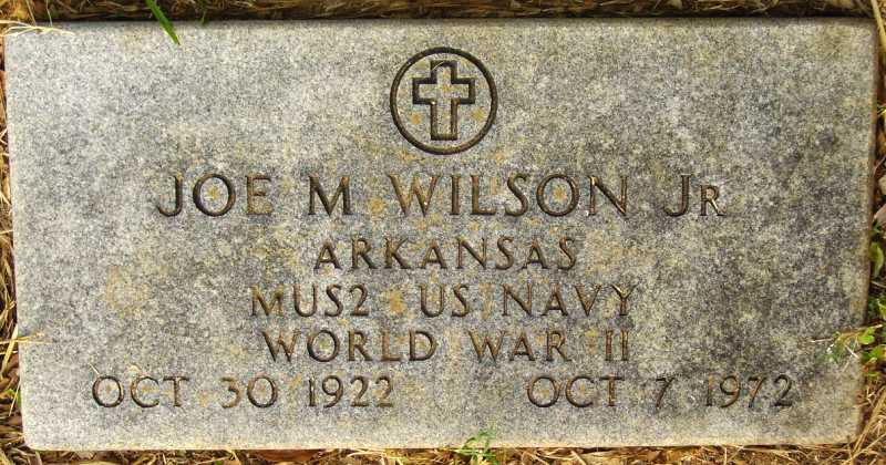 | WILSON, JOE M., JR. | OCT 30 1922 | OCT 7 1972 | "ARKANSAS" "MUS2 US NAVY" "WORLD WAR II" Christian Cross in circle emblem |