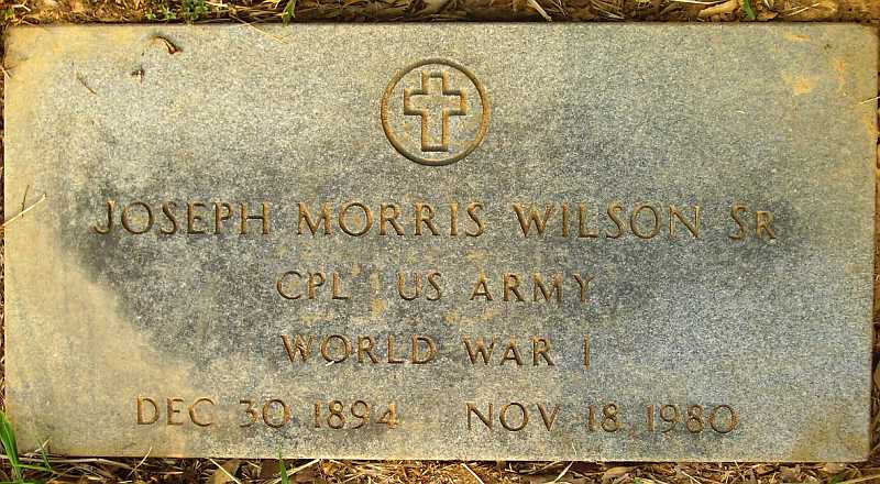 | WILSON, JOSEPH MORRIS, SR. | DEC 30 1894 | NOV 18 1980 | "CPL US ARMY" "WORLD WAR I" Christian Cross in circle emblem |