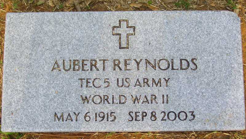 | REYNOLDS, AUBERT | MAY 6 1915 | SEP 8 2003 | "TEC5 US ARMY" "WORLD WAR II" Christian Cross emblem |