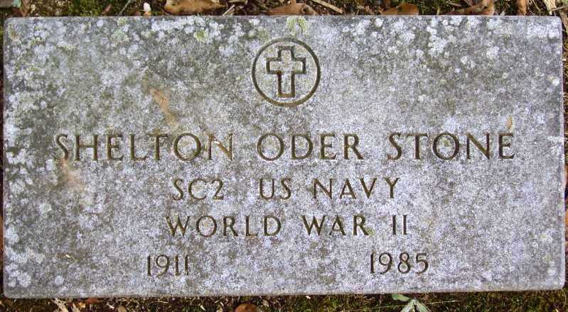| STONE, SHELTON ODER | 1911 | 1985 | "SC2 US NAVY" "WORLD WAR II" Christian Cross in circle emblem |