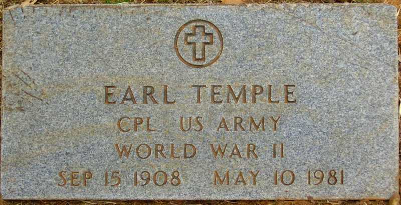 | TEMPLE, EARL | SEP 15 1908 | MAY 10 1981 | "CPL US ARMY" "WORLD WAR II" Christian Cross in circle emblem |