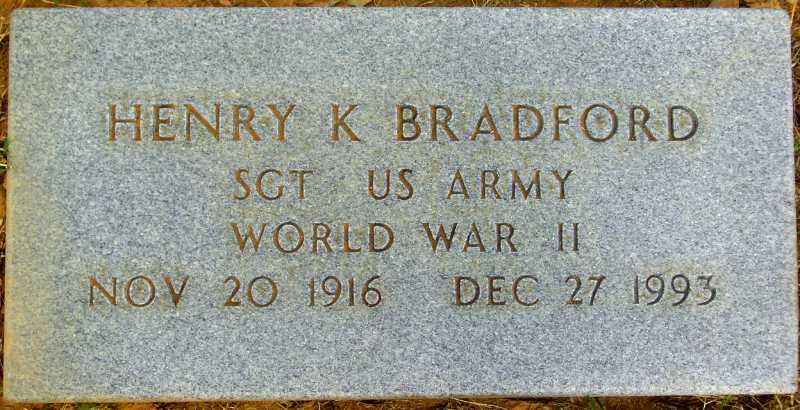 | BRADFORD, HENRY K. | NOV 20 1916 | DEC 27 1993 | "SGT US ARMY" "WORLD WAR II" |