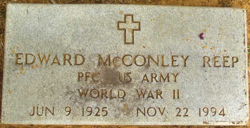 | REEP, EDWARD McCONLEY | JUN 9 1925 | NOV 22 1994 | "PFC US ARMY" "WORLD WAR II" Christian Cross emblem |