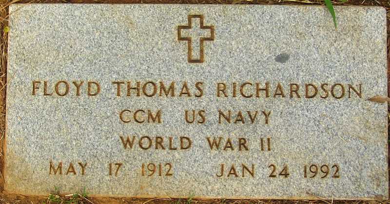| RICHARDSON, FLOYD THOMAS | MAY 17 1912 | JAN 24 1992 | "CCM US NAVY" "WORLD WAR II" Christian Cross emblem |