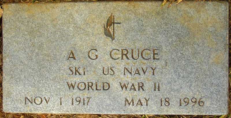 | CRUCE, A. G. | NOV 1 1917 | MAY 18 1996 | "SK1 US NAVY" "WORLD WAR II" United Methodist Cross emblem |