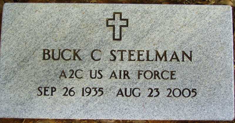 | STEELMAN, BUCK C. | SEP 26 1935 | AUG 23 2005 | "A2C US AIR FORCE" Christian Cross emblem |