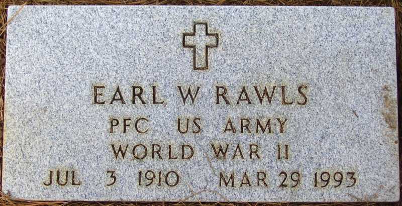 | RAWLS, EARL W. | JUL 3 1910 | MAR 29 1993 | "PFC US ARMY" "WORLD WAR II" Christian Cross emblem |
