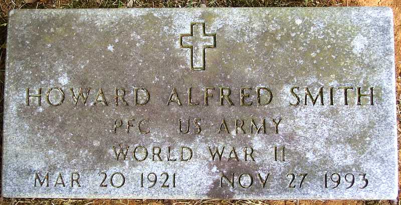 | SMITH, HOWARD ALFRED | MAR 20 1921 | NOV 27 1993 | "PFC US ARMY" "WORLD WAR II" Christian Cross emblem |