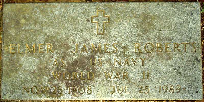 | ROBERTS, ELMER JAMES | NOV 25 1908 | JUL 25 1989 | "AS US NAVY" "WORLD WAR II" Christian Cross emblem |