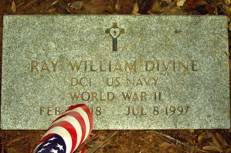 | DIVINE, RAY WILLIAM | FEB 7 1918 | JUL 8 1887 | "DC1 US NAVY" "WORLD WAR II" Lutheran Christian Cross emblem |