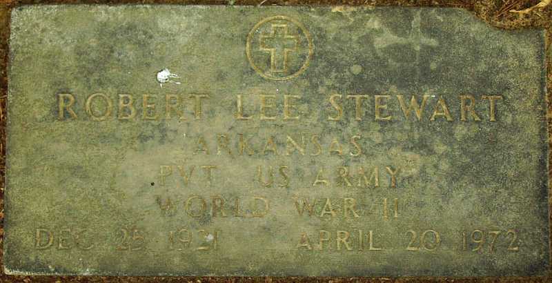 | STEWART, ROBERT LEE | DEC 25 1921 | APRIL 20 1972 | "ARKANSAS" "PVT US ARMY" "WORLD WAR II" Christian Cross in circle emblem |