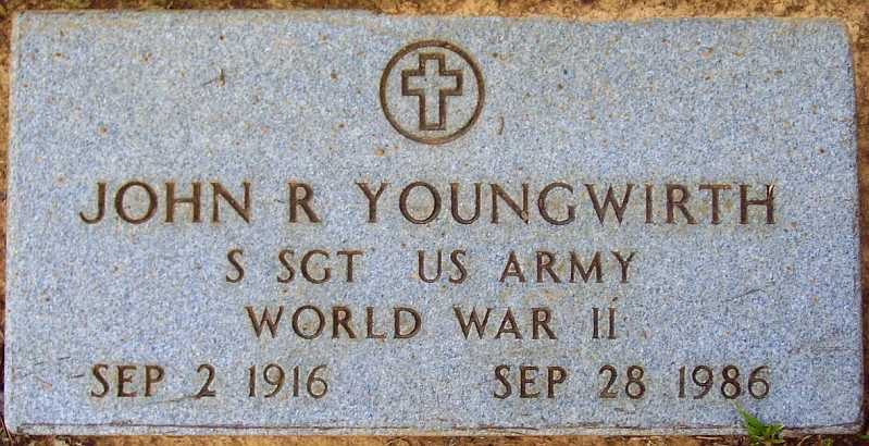 | YOUNGWIRTH, JOHN R. | SEP 2 1916 | SEP 28 1986 | "S SGT US ARMY" "WORLD WAR II" Christian Cross in circle emblem |