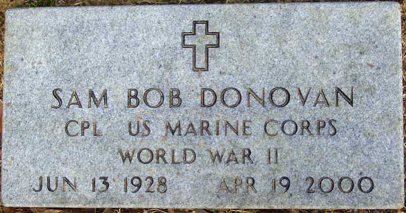 | DONOVAN, SAM BOB | JUN 13 1928 | APR 19 2000 | "CPL US MARINE CORPS" "WORLD WAR II" Christian Cross emblem |