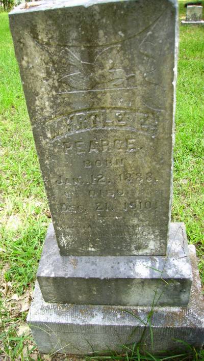 | Myrtle E. Pearce | 1-12-1888 | 12-21-1910 | Wife of Calvin Pearce | DP & LH | |