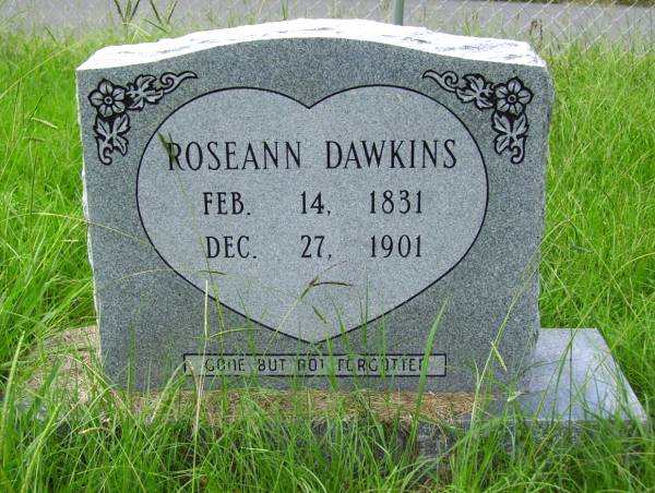| Roseann Dawkins | 2-14-1831 | 12-27-1901 | "GONE BUT NOT FORGOTTEN" Original Stone | DP & LH | |