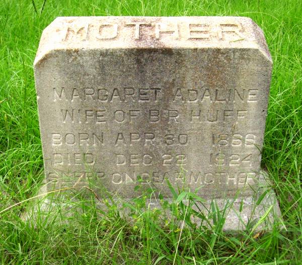 | Margaret Adaline Huff | 4-30-1866 | 12-22-1924 | "MOTHER" "WIFE OF B. R. HUFF" "SLEEP ON DEAR MOTHER" | DP & LH | |