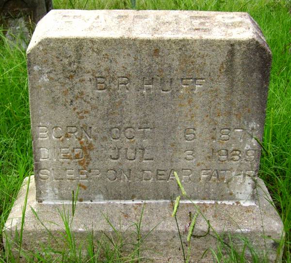 | B. R. Huff | 10-6-1871 | 7-3-1939 | "FATHER" "SLEEP ON DEAR FATHER" | DP & LH | |