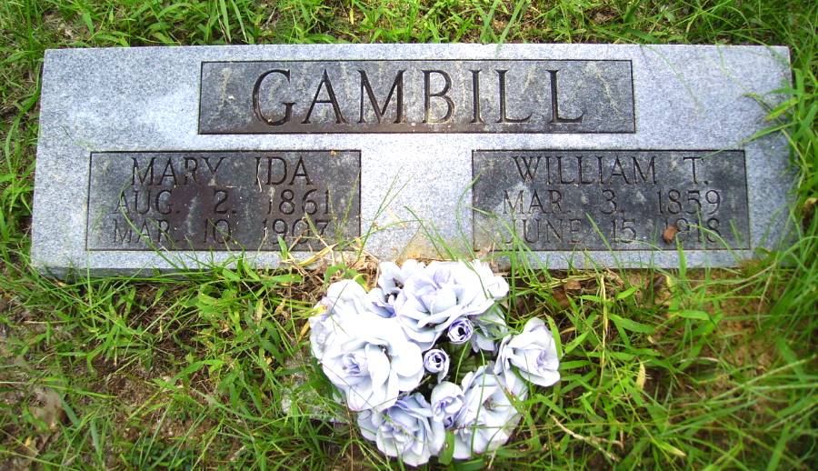 | William T. Gambill | 3-3-1859 | 6-15-1918 | Double Stone with Mary Ida Gambill [middle name Thomas; h/o Mary Ida Coats Gambill] | DP & LH | |