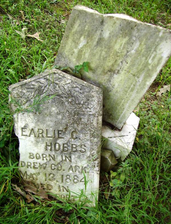 | Earlie C. Hobbs | 5-13-1884 | 7-24-1924 | "BORN IN DREW CO. ARK." "DIED IN SHREVEPORT, LA." | DP & LH | |