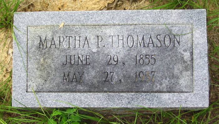| Martha P. Thomason | 6-29-1855 | 5-27-1937 | [Middle name Parilee; w/o B. F. Thomason; died at age 81 years]1 | DP & LH | |