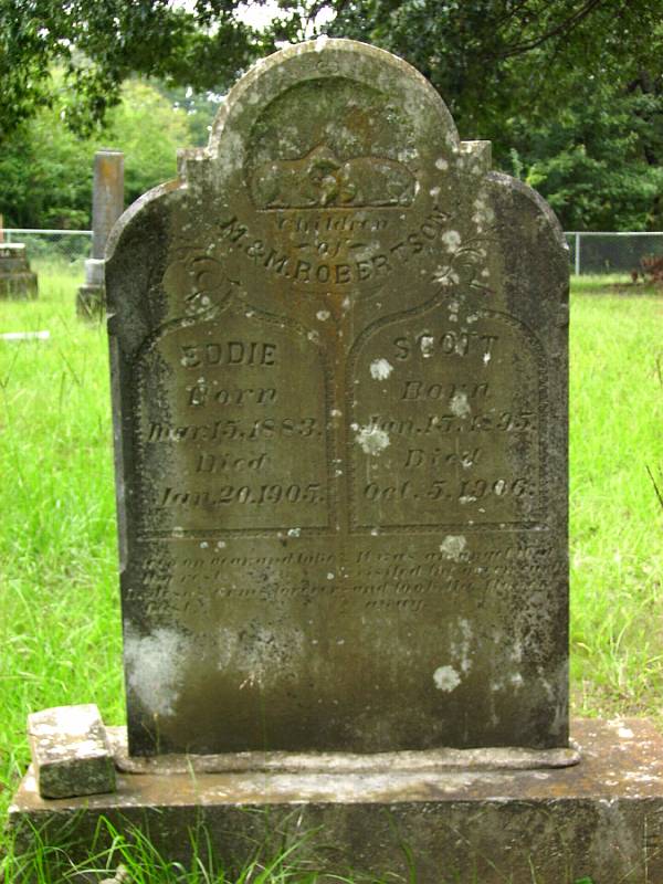 | Scott Robertson | 1-15-1895 | 10-5-1906 | Double Stone with brother Eddie Robertson age 11 years "Children of OF M & M ROBERTSON" | DP & LH | |