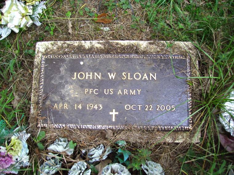 | John W. Sloan | 4-14-1943 | 10-22-2005 | Military Stone "PFC US ARMY" Christian Cross emblem | LH | |