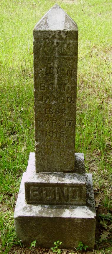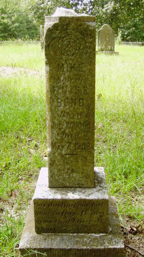 | Mike Bond | 7-24-1904 | 5-7-1908 | "Son of F. N. & S. R. BOND" "Our darling one hath gone before to greet us on that blissful shore" | DP & LH | |