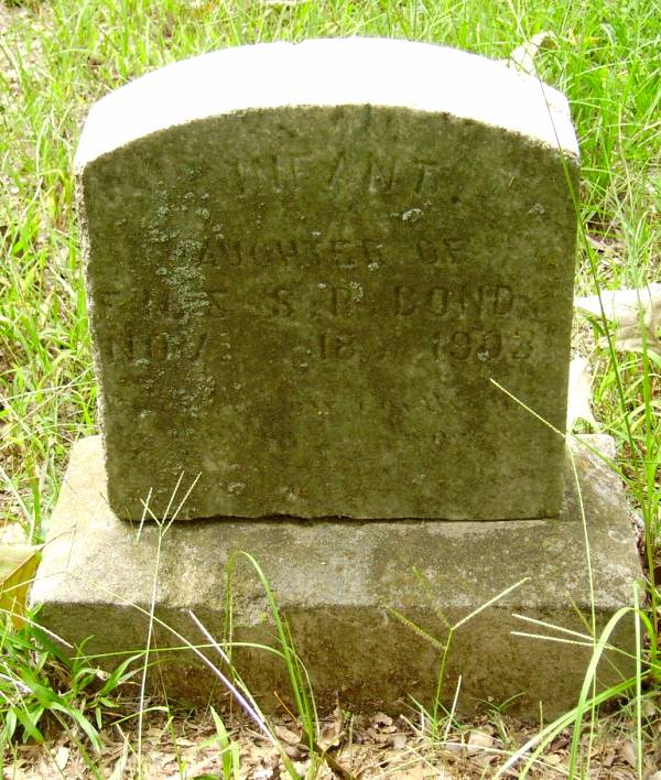 | Infant Bond | 11-18-1903 | "INFANT DAUGHTER OF F. N. & S. R. BOND" | DP & LH | ||