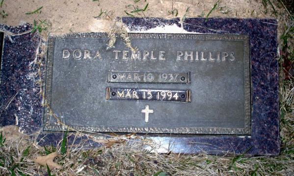 | Phillips, Dora Temple - NEW 3-22-2005 | Mar 10, 1937 | Mar 15, 1994 | Double Stone with Jimmie Dale Phillips, Cross Symbol | NJ |