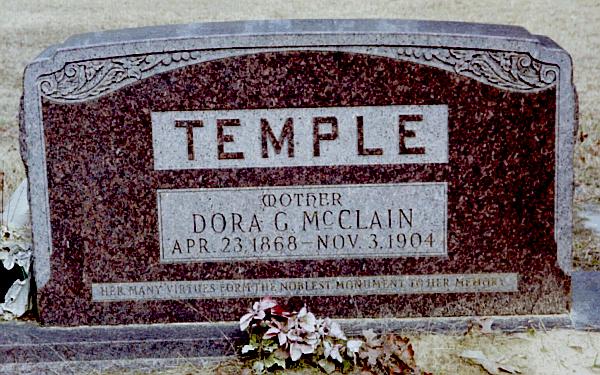 | Temple, Dora G. McClain | Apr 23, 1868 | Nov 3, 1904 | "MOTHER" "HER MANY VIRTUES FORM THE NOBLEST MONUMENT TO HER MEMORY" | PC |