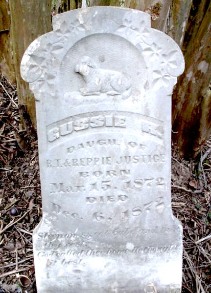| Justice, Gussie R. - NEW 3-22-2005 | 3-15-1872 | 12-6-1872 | "DAUGH. OF R. T. & REPPIE JUSTICE" "Sleep on sweet babe and take thy rest, God called thee home, He thought it best." | NJ |