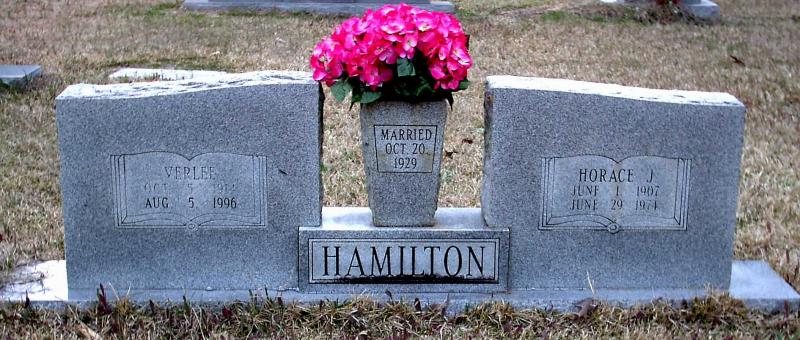 | Hamilton, Horace J. | 6-1-1907 | 6-29-1974 | Double Stone with Verlee Hamilton "MARRIED OCT. 20, 1929" | NJ |