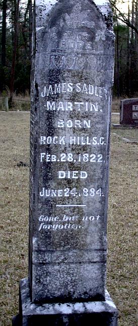 | Martin, James Sadler | 2-28-1822 | 6-24-1884 | "BORN ROCK HILL S.C." "Gone, but not forgotten." Tall slender stone has four names on it: James Sadler Martin and his two wives and son. | NJ |