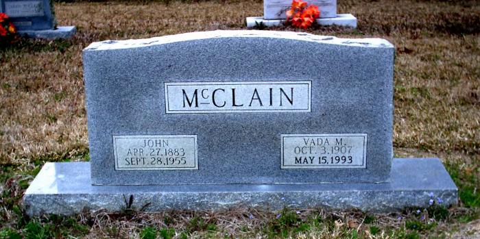 | McClain, Vada M. | 10-3-1907 | 5-15-1993 | Double Stone with John McClain | NJ |