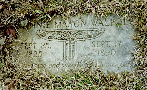 | Walpole, Johnnie Mason | Sep 25, 1888 | Sep 17, 1890 | "...is thine and sweet remembrance ours" | PC |