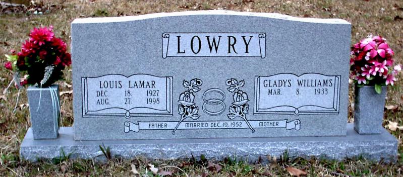 | Lowry, Gladys Williams - NEW 3-22-2005 | Mar 8, 1933 | "MOTHER" "MARRIED DEC. 19, 1952" Double Stone with Louis Lamar Lowry | NJ | |