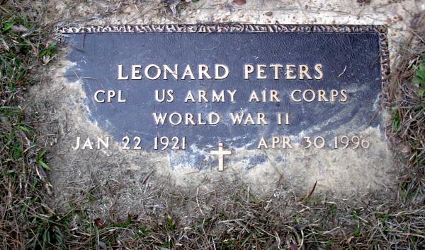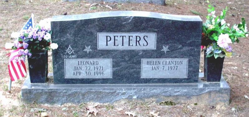 | Peters, Leonard - NEW 3-22-2005 | Jan 22, 1921 | Apr 30, 1996 | Double Stone with Helen Clanton Peters, Masonic Symbols "50 YEARS" He also has a Military Stone, "CPL US ARMY AIR CORPS WORLD WAR II" Cross Symbol | NJ |
